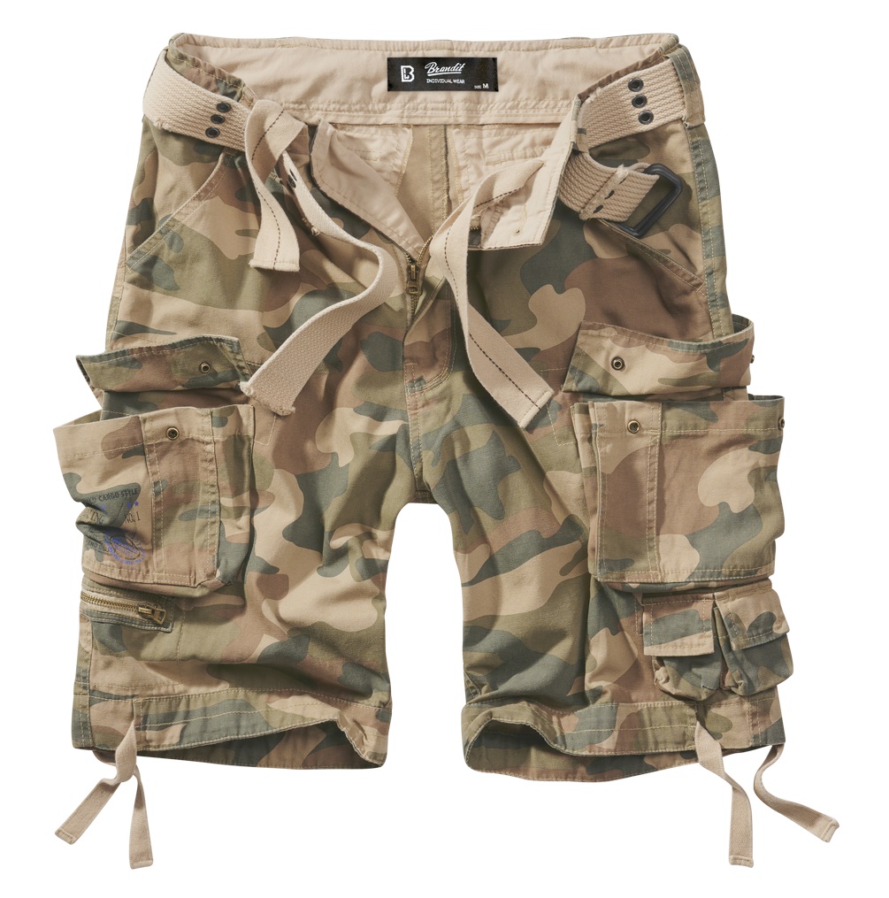 Cargoshort Savage Vintage von Brandit mit Gürtel, weitem Bein, Beintaschen, sowie 2 aufgesetzten Minipocket Taschen.