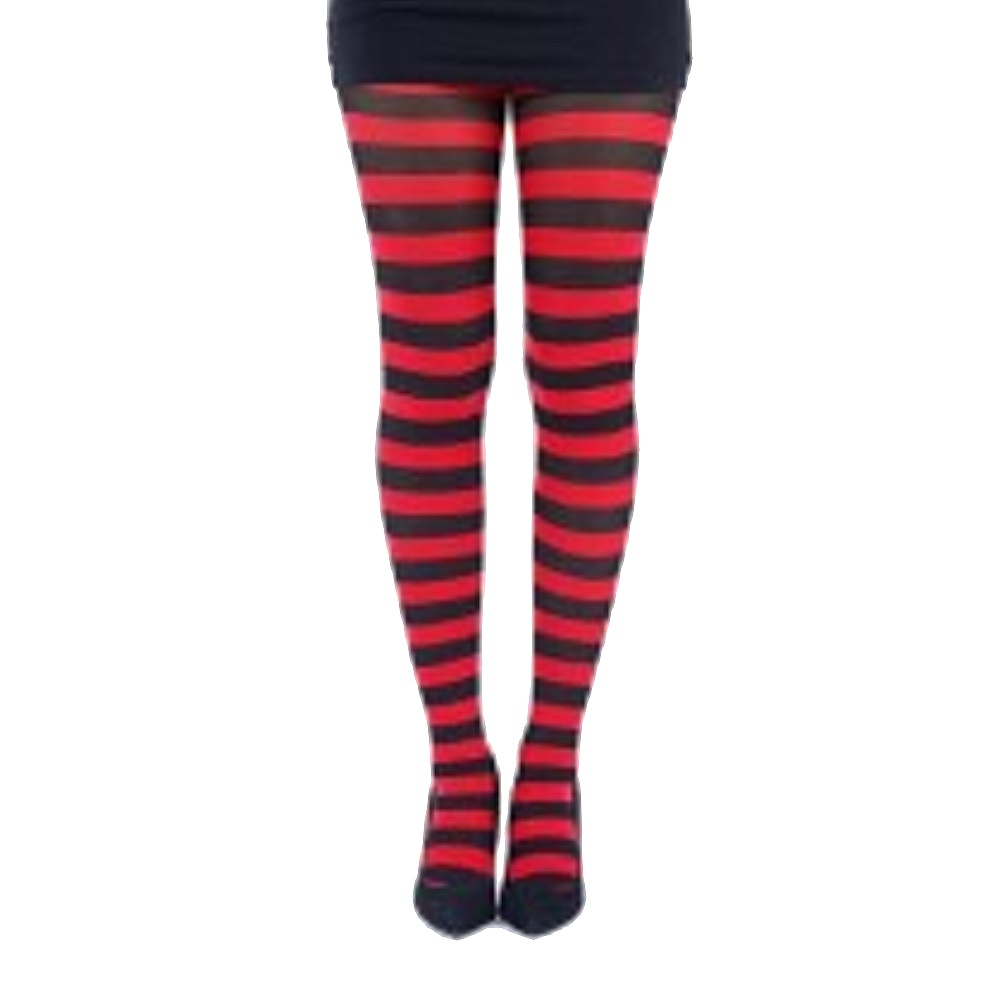 Feintrumpfhose im Ringellook mit schwarz/roten Streifen.