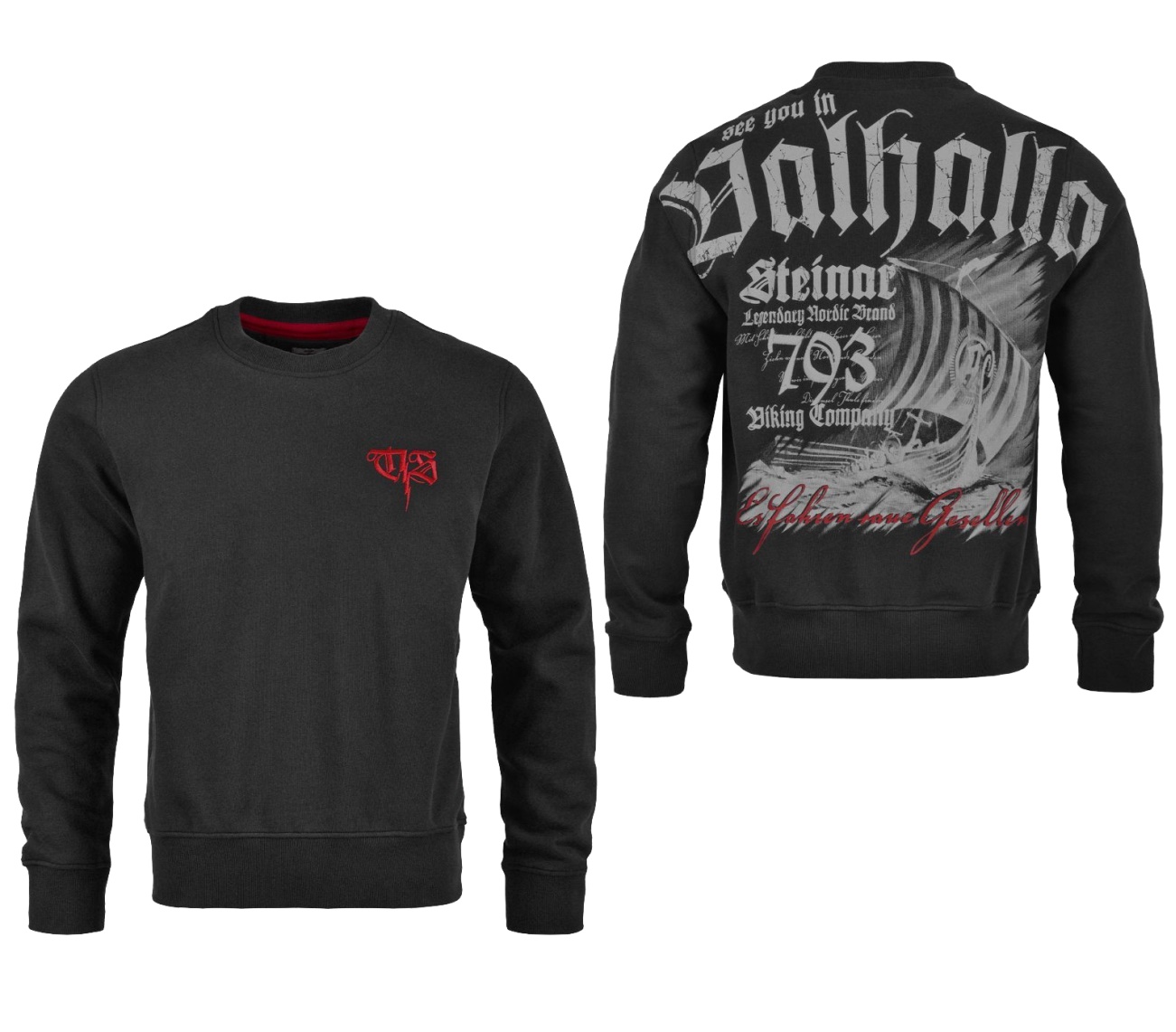 Thor Steinar Sweat mit Wikinger-Motiv - See you in Valhalla - auf dem Rücken. Gesticktes TS-Logo auf der Brust.