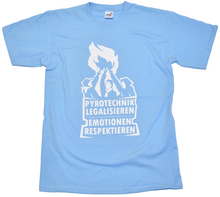 vorn großer Motiv-Druck: - Pyrotechnik legalisieren Emotionen respektieren -