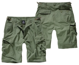 Cargoshort Savage Vintage von Brandit im Armystyle mit vielen Tasche, leicht überknielang, mit Gürtel, weitem Bein, Beintaschen, sowie 2 aufgesetzten Minipocket Taschen.