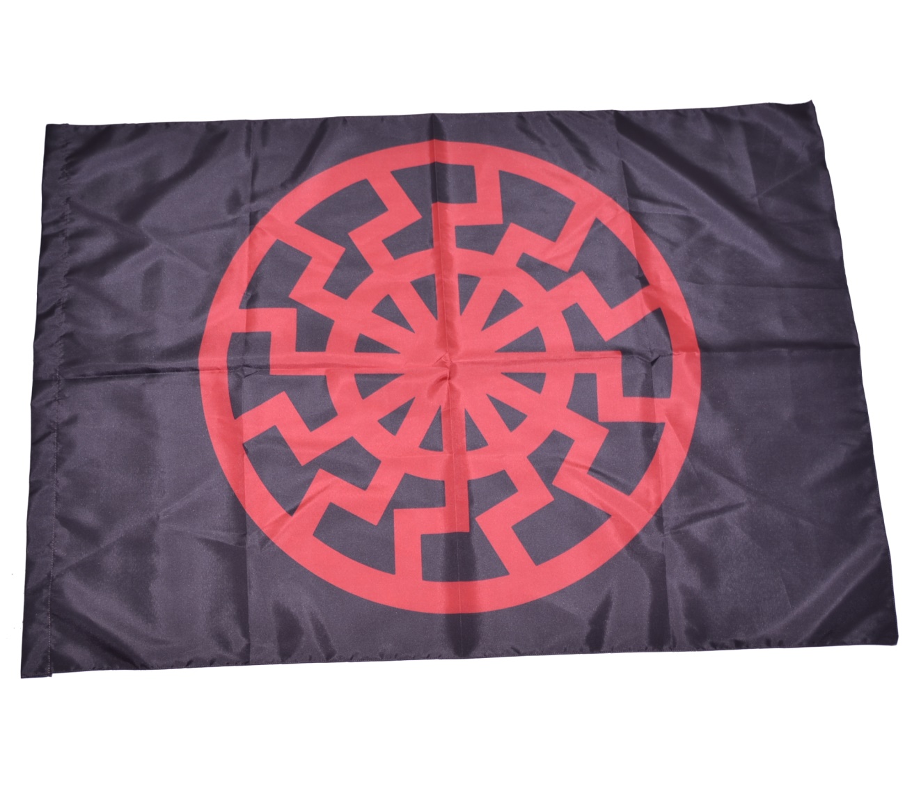 Fahne mit Motiv: Schwarze Sonne, Druck rot