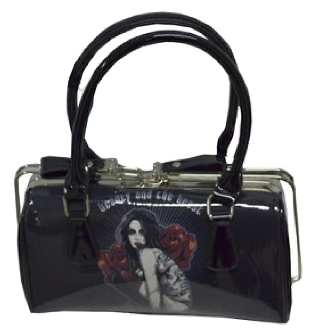 Hochwertige Lacktasche mit 3 kleinen extra Innentaschen, wovon 2 mit Reißverschluss verschließbar sind. Der Innenraum ist aus gemustertem Stoff. Bei dem extravaganten Verschluss müssen beiden Laschen, in die obere Mitte geschoben werden, somit ist die Tasche verschlossen. Kleiner Aufdruck the beauty and the beast. Die Tasche ist beidseitig bedruckt.