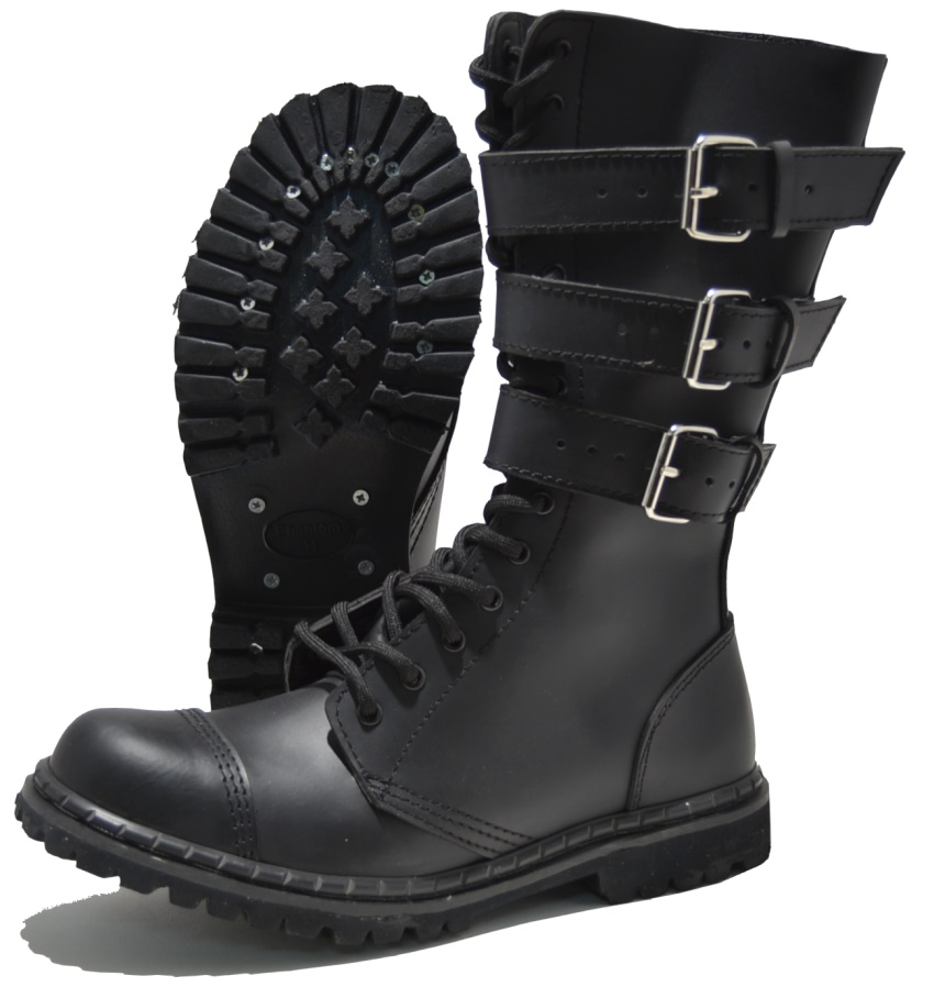 Die Stahlkappenstiefel mit 3 Schnallen, sind aus robustem Glattleder und haben stabile Nähte. Der Phantom Boot überzeugt durch Qualität und Langlebigkeit. Der Stiefel hat Stahlkappe, sowie eine geschraubte und geklebte Profilsohle.