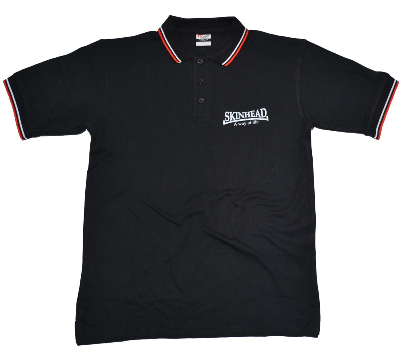Polo bedruckt Skinhead A Way of Life, Kontraststreifen: rot/weiß