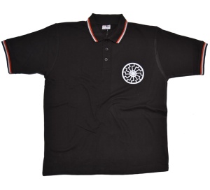 kleiner Motiv-Druck auf linker Brust: - Gott mit uns -; rot/weiße Kontraststreifen