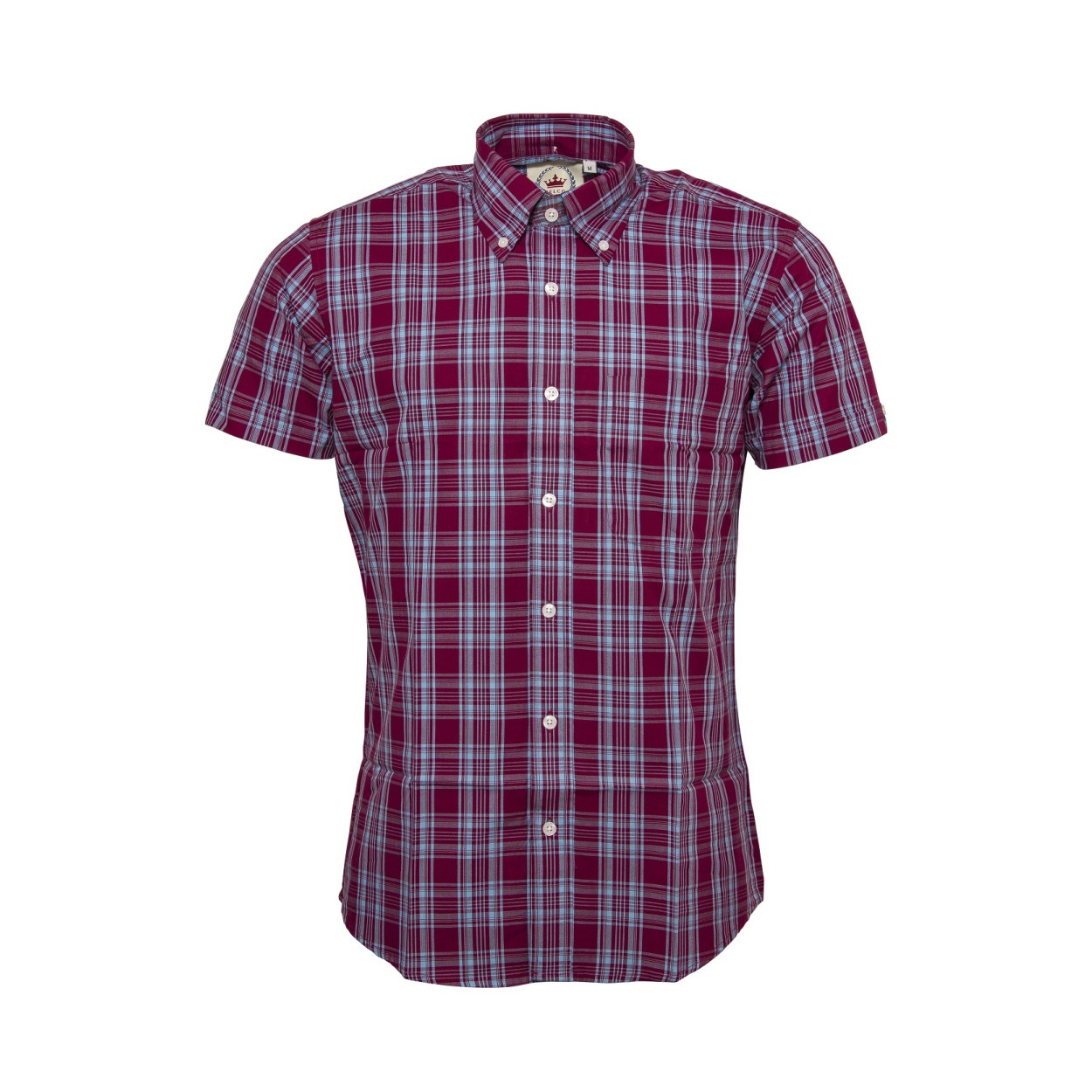 Klassisches Karohemd von Relco in kurzarm mit Button Down Kragen. Ein kleiner Knopf befindet sich rückseitig am Kragen. In der Mitte des Rückens mit Kellerfalte und ein kleiner Knopf befindet sich am Ärmel.