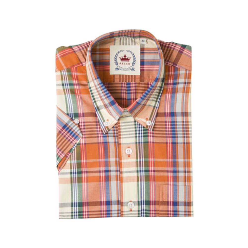 Klassisches Karohemd von Relco in kurzarm mit Button Down Kragen. Ein kleiner Knopf befindet sich rückseitig am Kragen. In der Mitte des Rückens mit Kellerfalte und ein kleiner Knopf befindet sich am Ärmel.