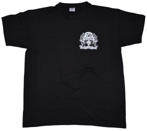T-Shirt 50 Jahre Skinhead, kleiner Motivdruck auf linker Brust und großer Motivdruck auf dem Rücken: - 50 Years Skinhead A Way Of Life -