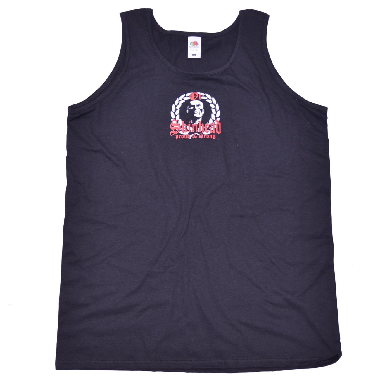 Skinhead Motiv Tank Top, vorn kleiner Motivdruck Skinhead and Proud
